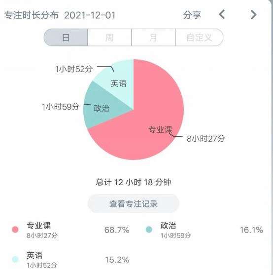 其次,专注很重要。备考期间我会使用效率app锁定手机,记录专注时长,卸载了非必要的社交app。不用焦虑学习时长,专注的时间才是有效的,否则只是消耗精力,疲惫而无收获,是没有意义的。