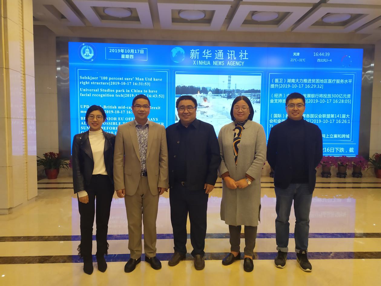 当天下午,考察团一行前往新华通讯社,参观新华通讯社,并同新华通讯社英文客户端总监、副总编辑杨国强先生就行业发展现状、新媒体时代背景下的人才培养路径以及共建学生实践基地等重要问题进行沟通交流。