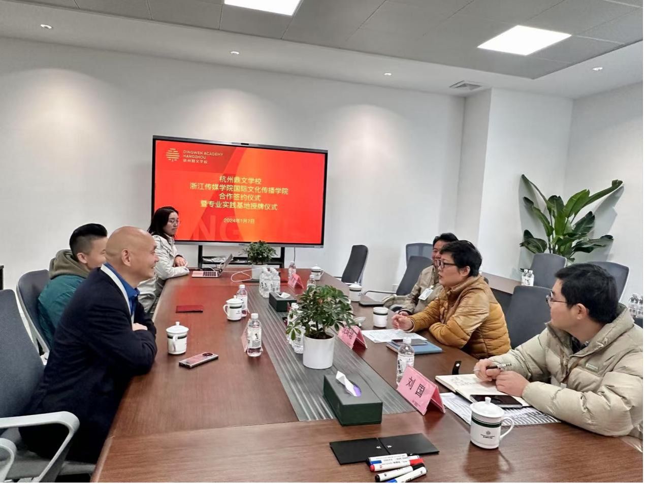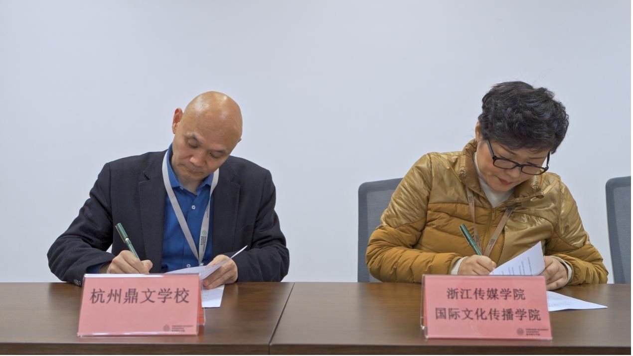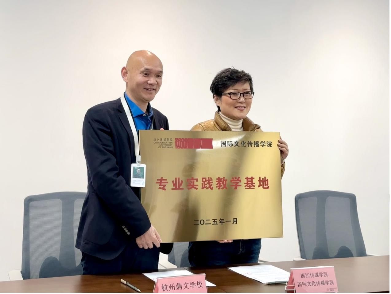 与杭州鼎文学校达成合作共识,双方签署了专业实践教学基地协议,并举行了授牌仪式。