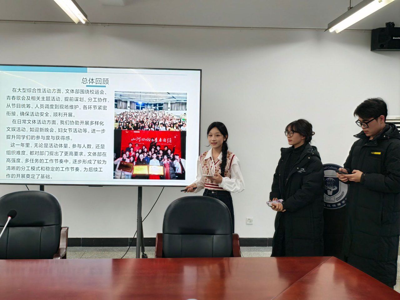 主席团执行主席周峪因总结会议时,充分肯定了学院学生会与社团过去一年的工作成效,强调本次述职评议会是落实共青团改革、考核团学骨干履职能力的关键举措。她提出,要践行“服务青年成长、助力跨文化传播”的宗旨,将专业本领融入团学工作创新实践,推动服务同学与自我成长的双向奔赴。