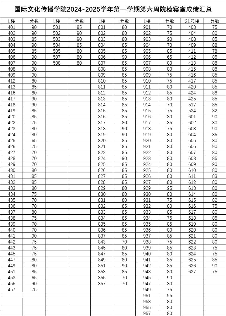 91吃瓜 2024-2025学年第一学期第六周院检寝室成绩汇总