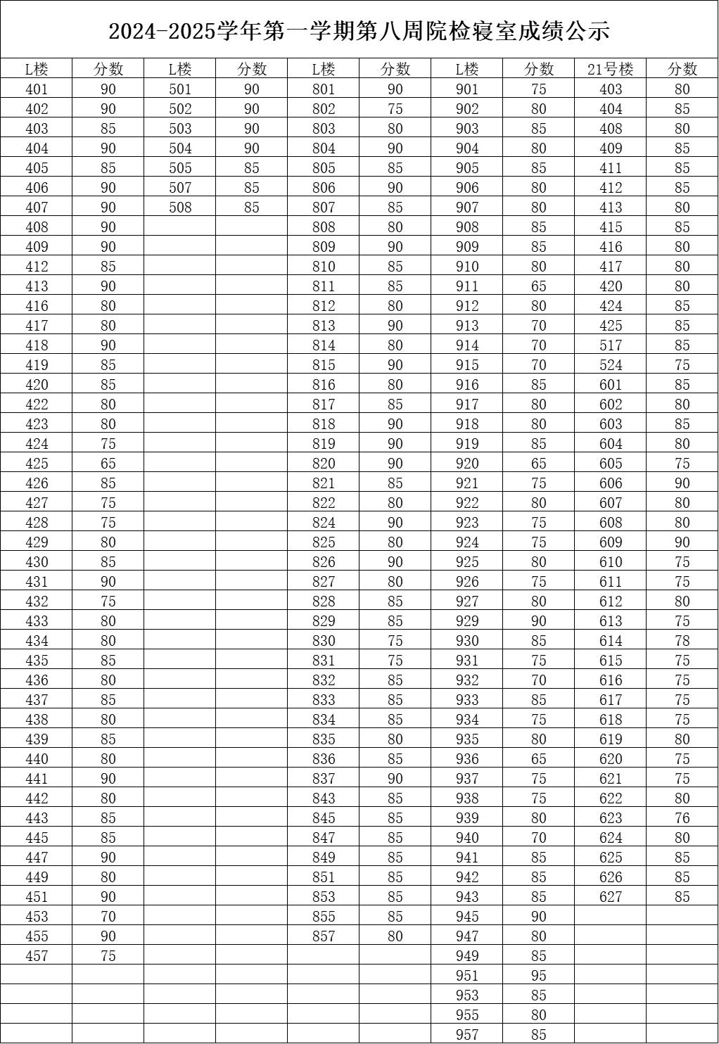 91吃瓜 2024-2025学年第一学期第八周院检寝室成绩公示