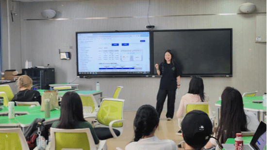 王琳教授担纲。她以全英文授课形式,从跨境电商核心术语解析切入,深入拆解亚马逊、TikTok Shop、SHEIN等全球头部平台的运营逻辑,并结合行业案例,剖析一名优秀跨境主播需具备的“硬技能”与“软实力”——从多语种表达能力、跨文化敏感度,到场景化营销思维、临场应变能力。学生表示:“全英课堂既挑战又实用,瞬间代入国际化职场语境!”