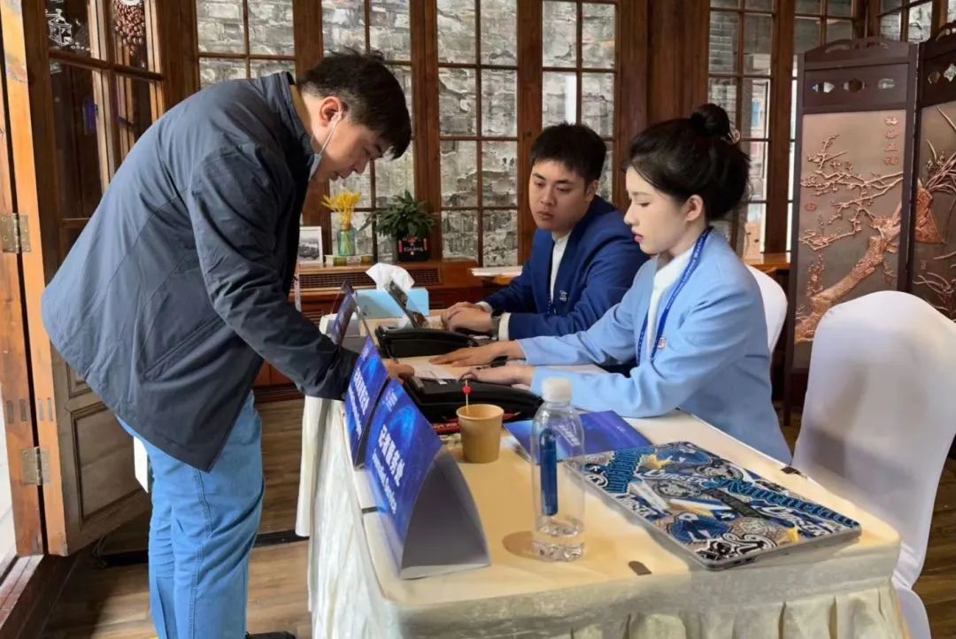 有13名会场和活动服务组的“小梧桐”分成小组服务不同的展厅。每位志愿者不仅要负责颁奖、迎宾等礼仪服务,还要熟悉每一个场所,负责提供为嘉宾指引的通用服务。前期进行点位踩点、礼仪培训和会场活动彩排的任务。日均步数三万加,让志愿者能熟练地知道西栅景区里每个地方通往各个会场的最优路线。能让大家坚持下来的,是他们“小梧桐”的特殊身份,是胸前那一枚闪闪发亮的志愿者徽章,使他们成为2023世界互联网大会中的一抹“乌镇蓝”。