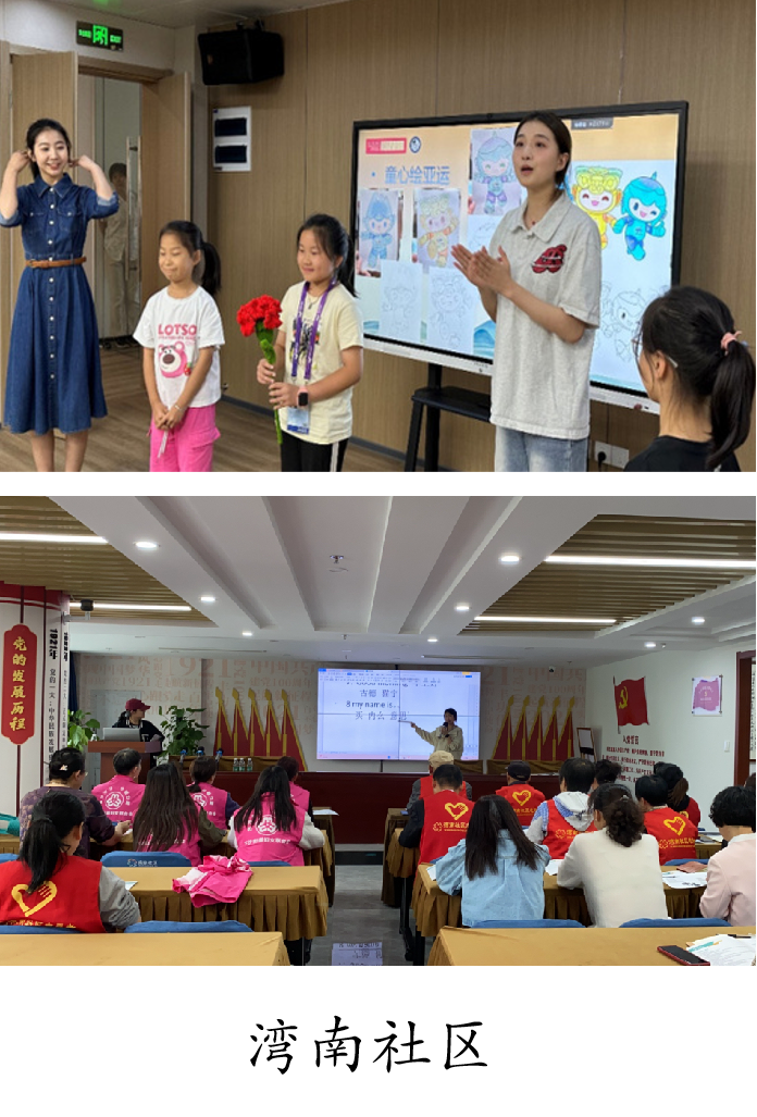 组建“英传亚运,志扬青春”志愿服务实践团队,结合自身学科优势,走进杭州市钱塘区多个社区,开展多种形式的亚运英语课堂。与钱塘区临江街道团工委结对共建,面向社区居民开展双语培训服务。此外,还积极深化与朗琴社区的大学生社区实践计划,提供常态化志愿服务。