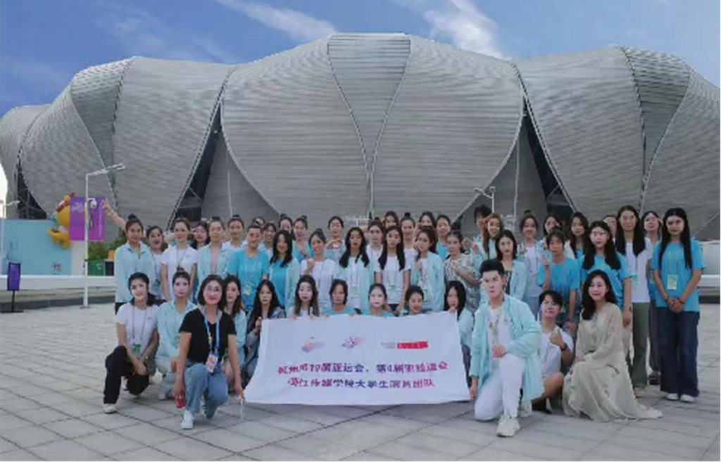 “国泰民安女孩”李吉理、“淡定哥”潘狄安等受到央视新闻、China Daily等媒体点赞报道。160余名师生投入参与到亚运会筹备及赛事工作中,1名学生担任采火使者、10名青年教师担任外宾领队、37名学生担任场馆、礼仪志愿者;65名学生成为亚运会开幕式演员;55名学生凭实力出圈,承担亚运会双语赛事播报工作。
