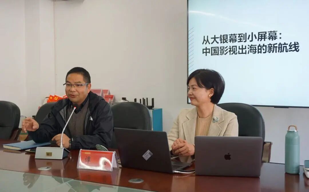 院长戴运财主持,特邀北京电影学院教授、博士生导师、国际学院院长谭慧,以《从大银幕到小屏幕:中国影视出海的新航线》为题,带领同学们回顾中国影视国际传播的历程,探讨在流媒体时代中国故事如何更好地走向世界。